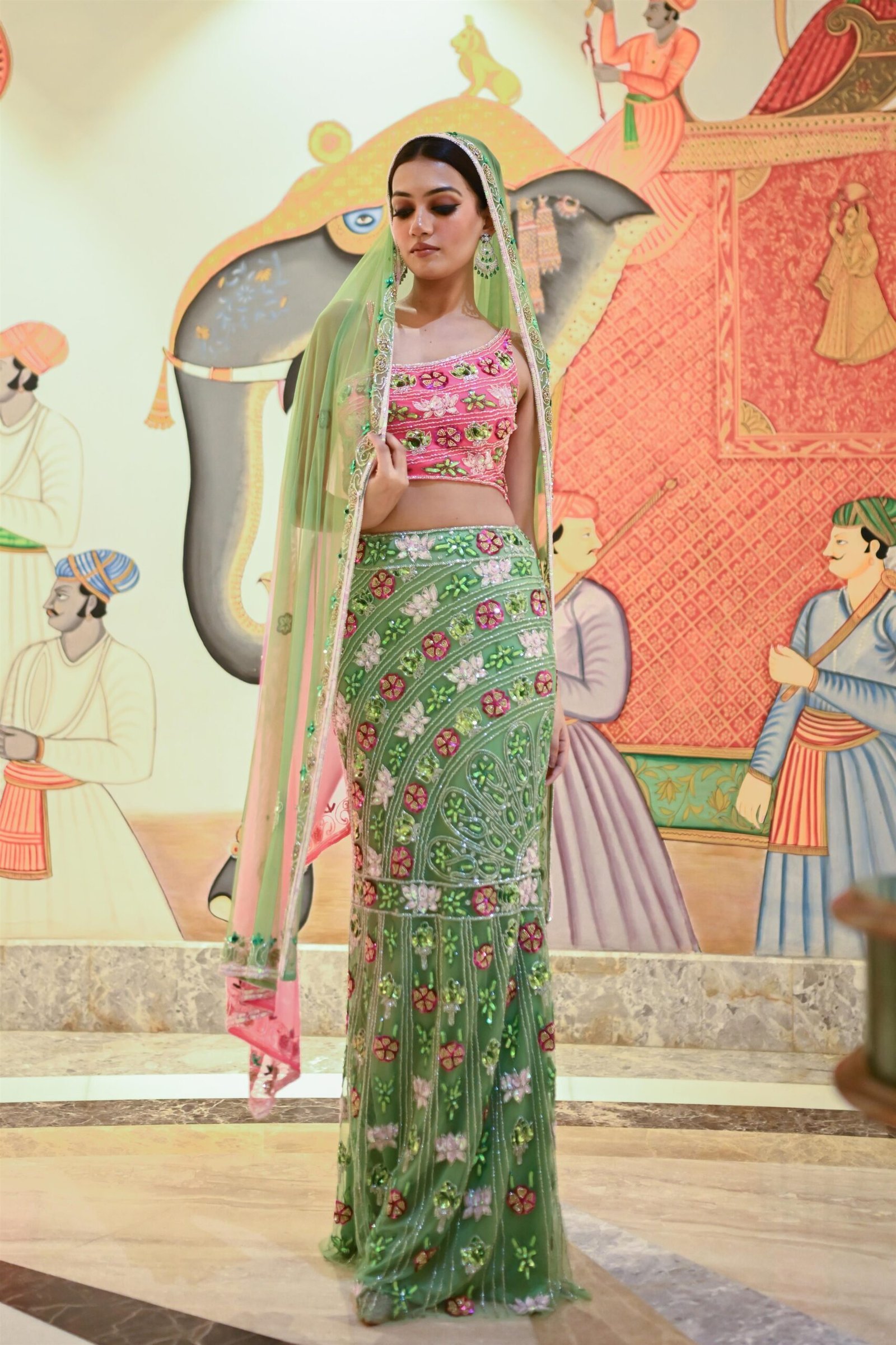 Step into the spotlight on your special day with our stunning Indo Western Lehenga Choli, meticulously designed to give you a graceful and eye-catching Mehendi Sangeet look. This exquisite attire blends traditional charm with modern flair, ensuring you feel both stylish and comfortable as you celebrate with your loved ones.